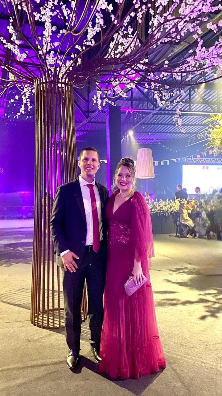 Convidamos para recepção no dia 01 de novembro de 2025, no The Palace Eventos, em São Carlos, São Paulo, às 21:00, após a benção matrimonial.